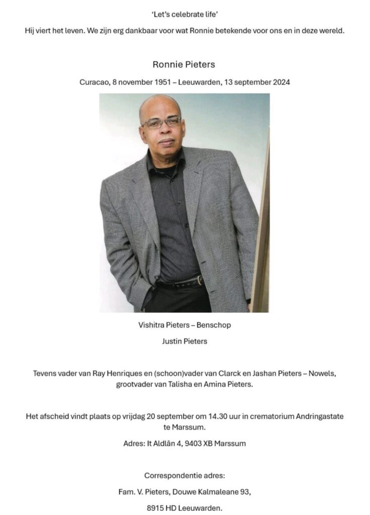 Bij de laatste ontmoeting die wij hadden met Ronnie in april j.l. zei hij in bonustijd te leven. Hij was benieuwd naar de presidentsverkiezingen in de VS en had besloten november te halen. Dit is helaas niet het geval.
